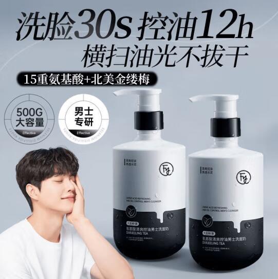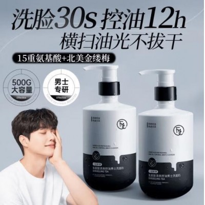 男士洗面奶清爽控油温和清洁去油净痘淡痘印缩毛孔不紧绷护肤洁面 氨基酸清爽控油男士洗面奶500ml
