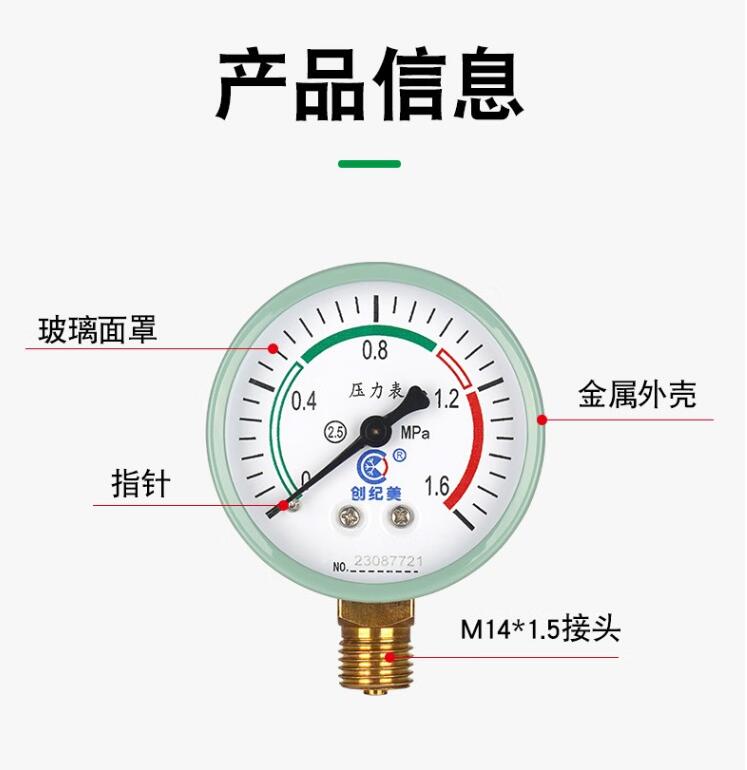 子琪Y60压力表自来水水压表空气压力表地暖分水器打压测量4分/6分一寸