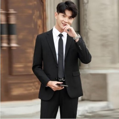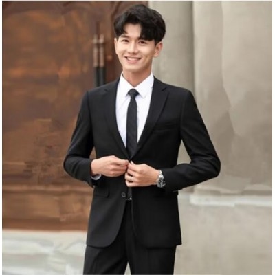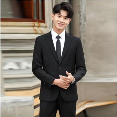 商品名称:春季西服男士韩版修身上衣外套伴郎新郎结婚商务职业正装小西装男 黑色 XL