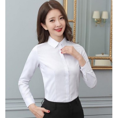 首页 > 时尚服装 > 女士职装 > 修身长袖衬衫女2024秋冬新款工作服气质职业装正装通勤上衣 白色明扣长袖