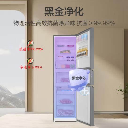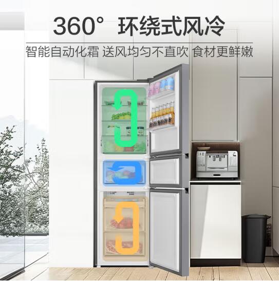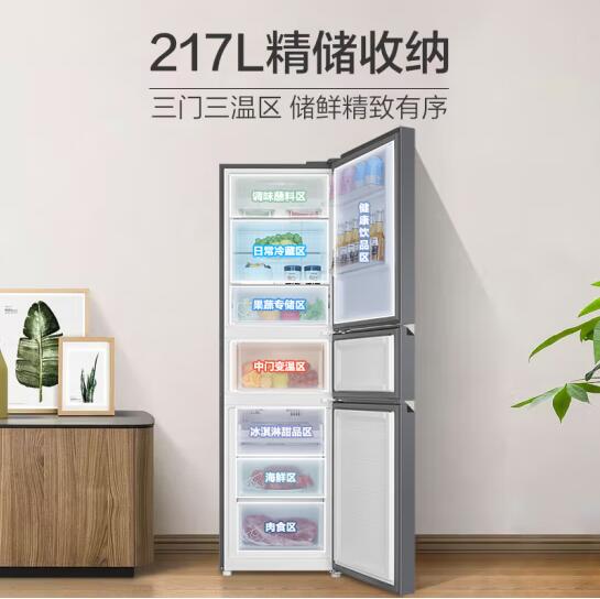 海尔217升风冷无霜三开门多门小户型家用迷你电冰箱宿舍租房一级能效冷冻冷藏两用